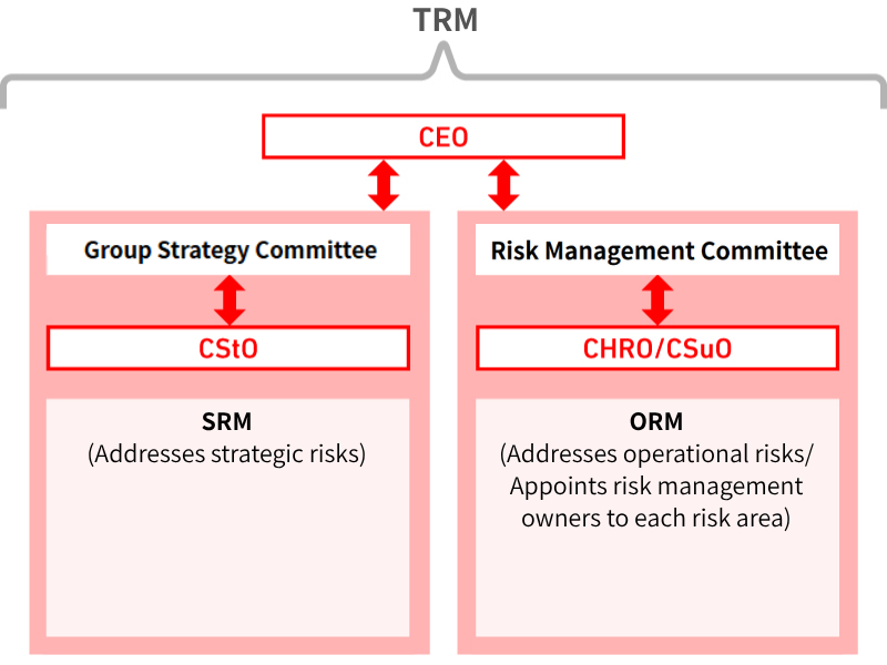 由主管人事・总务/可持续发展的负责人负责,在CEO领导下设立“风险管理委员会”,负责制定业务运营风险管理方针,并推动基于该方针的举措及进度管理。风险管理委员会的主席为CEO,其他委员包括主管人事・总务/可持续发展的负责人及CEO指定人员。
