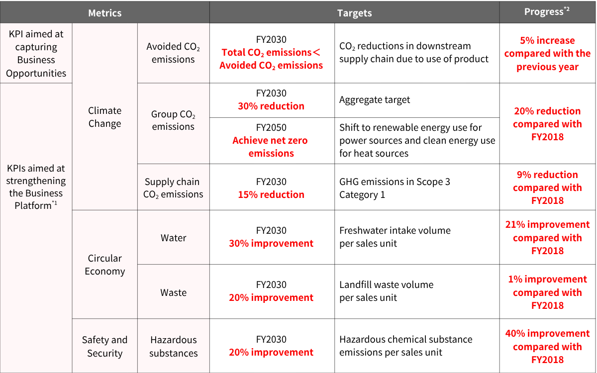 - *1强化经营基础的KPI目标值均以2018年度为基准年